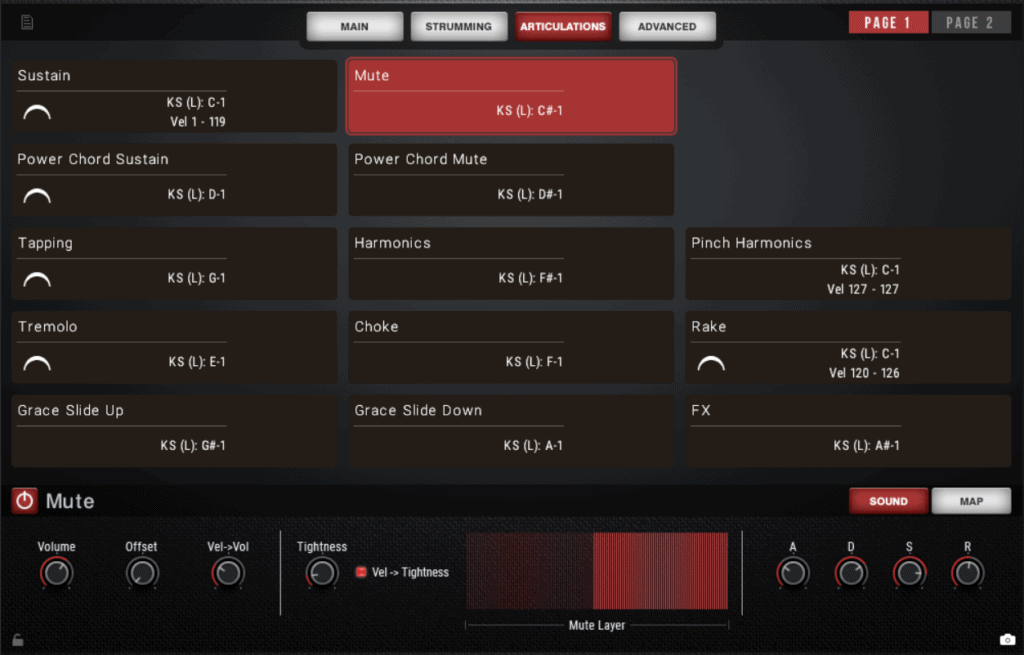 Shreddage 3.5 features a consolidated Articulations tab that gives you all controls related to the sound and mapping of each articulation in a single place. Everyone has their own preferences for how to perform or write for virtual guitar, and with “Total Articulation Control Technology” (TACT) 3, you can create the perfect setup for your DAW.